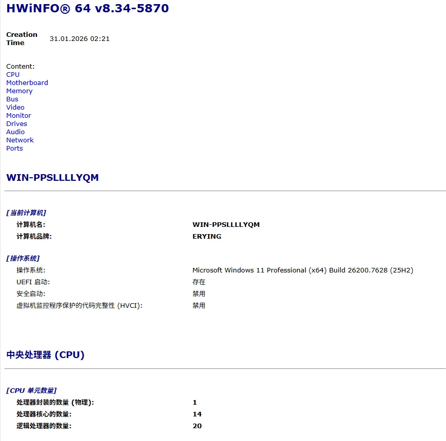 :导出 HTML 报告,永久保存硬件完整参数,方便后续升级、售后核对。