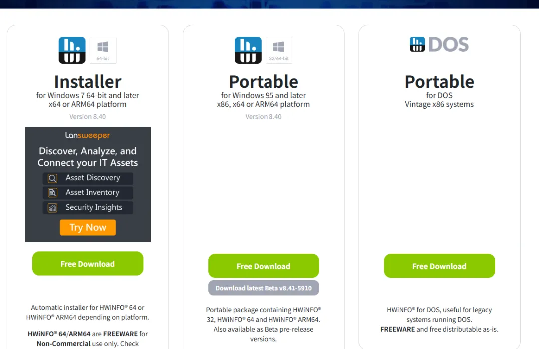 从官网下载便携版(Portable),解压后直接双击HWiNFO64.exe启动,无需安装。–下载地址见文末