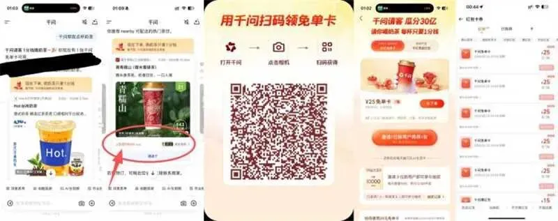 然后千问就会弹窗 有一分钱奶茶