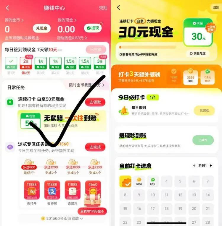 确保签到了 有时有bug 断签归零