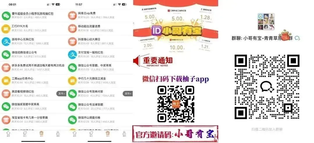 以上信息来自柚子app和小哥有宝群