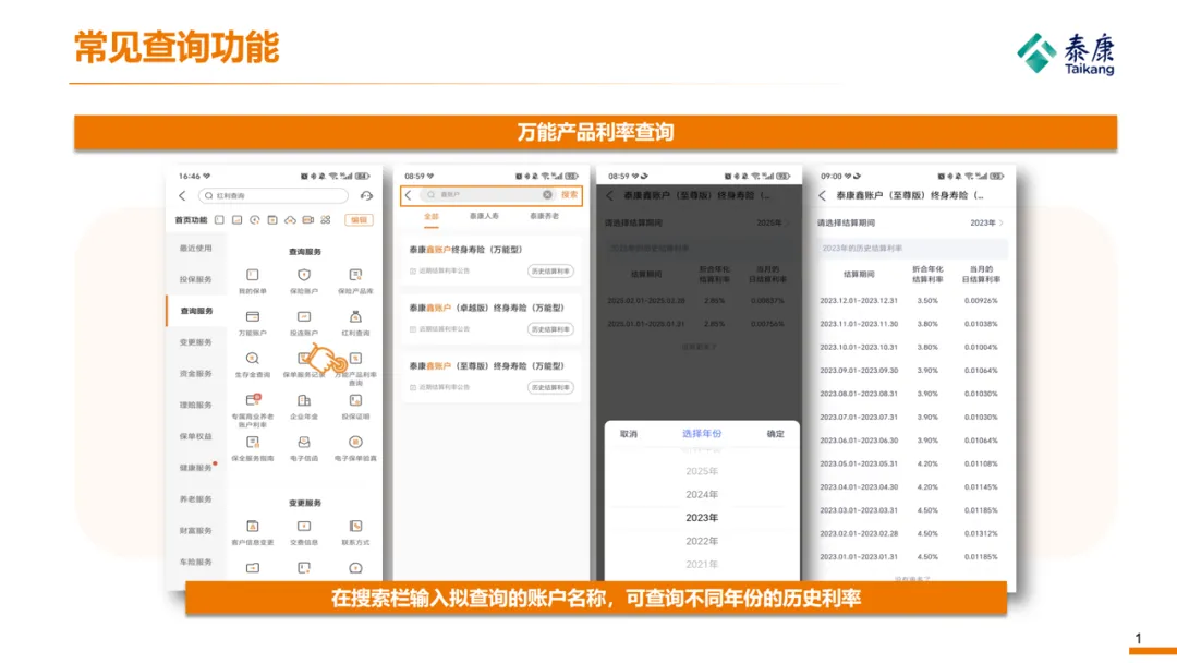 6:常见查询功能-万能产品利率查询(当客户需要查询自己名下保单的万能账户目前利率时)可通过下面的查询功能操作