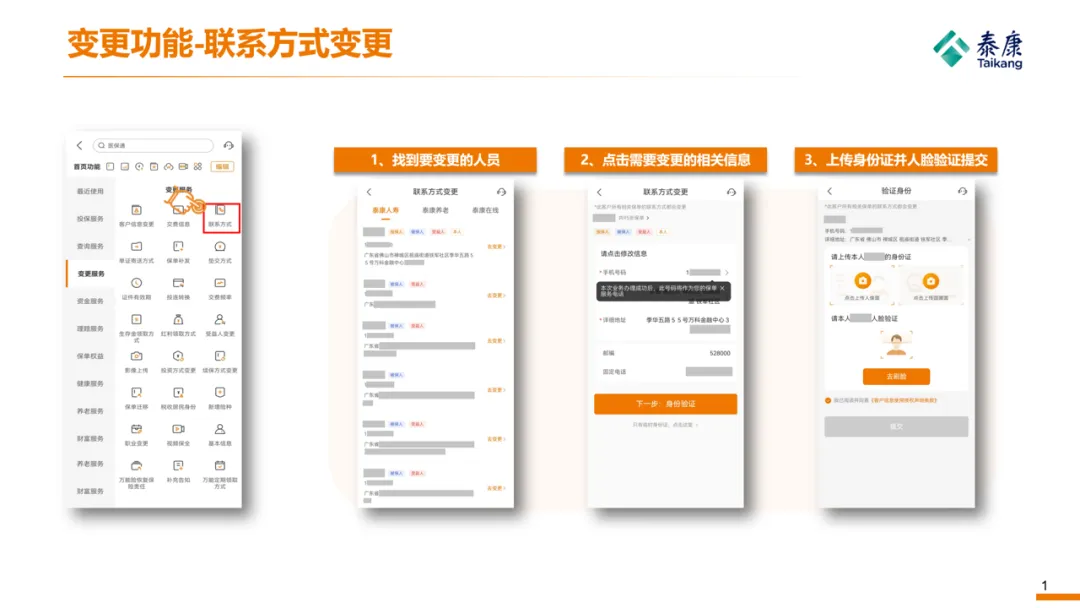 联系方式变更–点击变更服务,点击联系方式变更,找到需要变更的人员,点击需要变更的相关信息,上传身份证刷脸提交