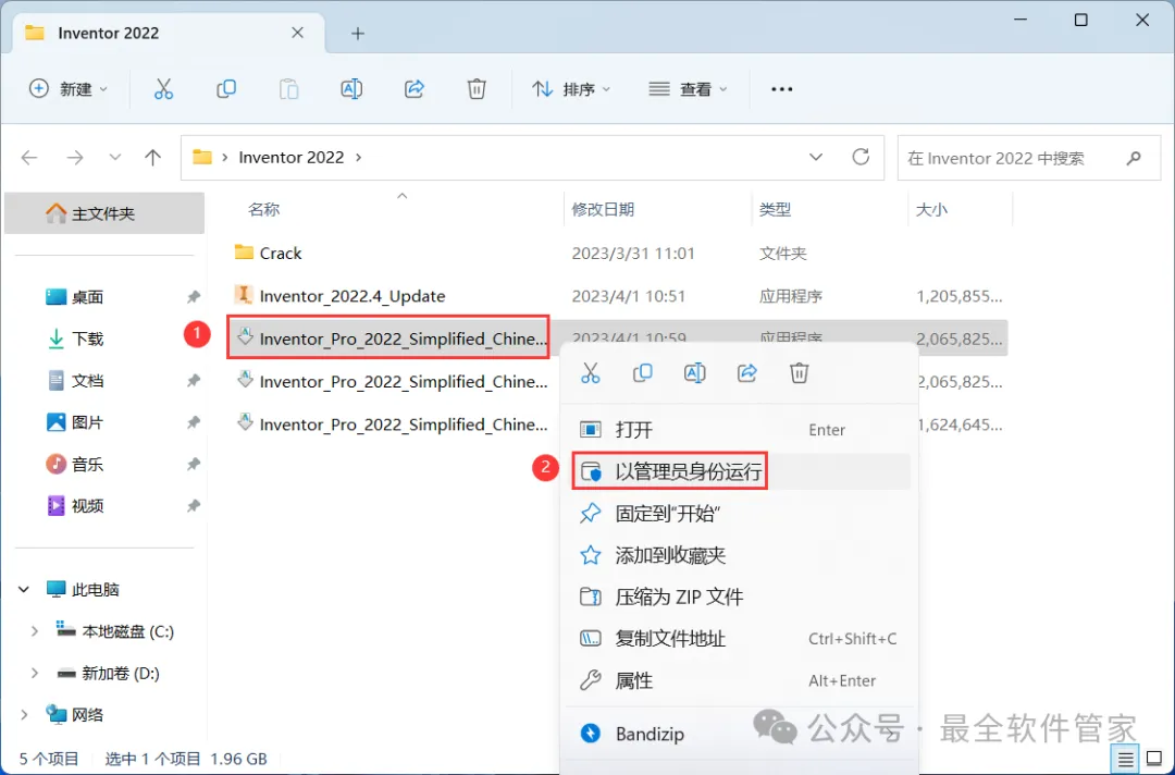 1、下载Inventor 2022软件安装包到电脑上,右键选择【解压到Inventor 2022\】