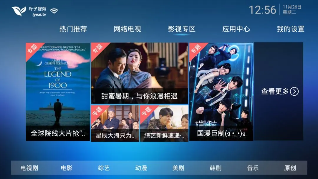 叶子TV这款电视盒子软件是一款观看电视直播,电视剧,电影都是不错的点播软件。这个软件的亮点就是画质比较高清,片源比较多,软件界面看起来也非常舒服。是目前非常不错的一个电视盒子软件。