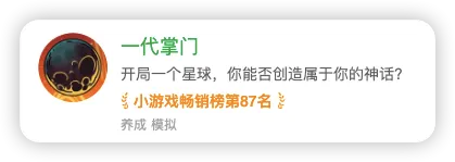 今天推荐的这款新车型游戏,已经进入了S2赛季,且有APP和小程序两个版本,开局一个星球,成为造物主,经营你自己的势力,喜欢角色扮演养成的,特别推荐,质量高,近期常常冲上畅销榜!对了,高自由度的一款小游戏,适合高玩!