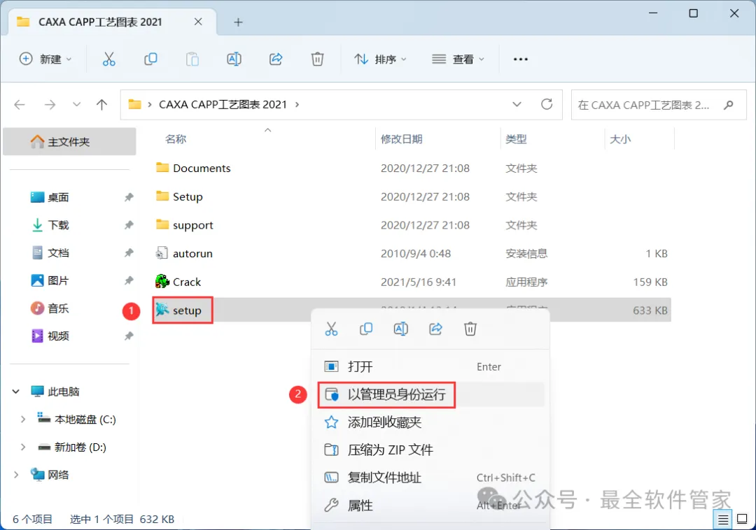 3、找到【setup】应用程序,右键选择【以管理员身份运行】它