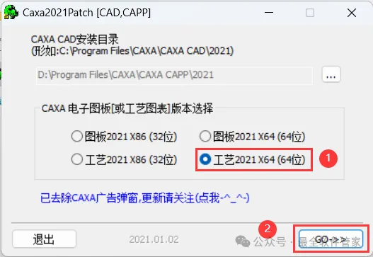 11、勾选【工艺2021 X64(64位)】,再点击【Go】