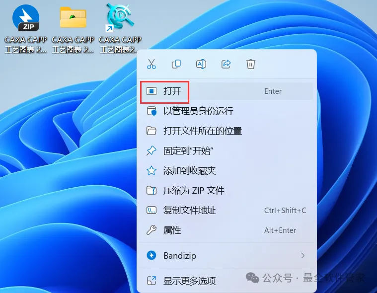 13、回到桌面,右键桌面上的【CAXA CAPP工艺图表 2021软件图标】,点击【打开】
