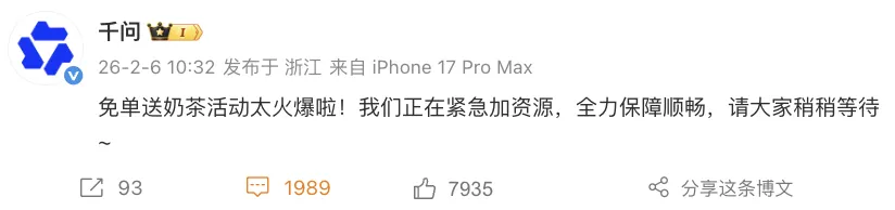 继腾讯元宝App启动10亿元红包活动后,阿里巴巴旗下千问App重磅推出“春节请客计划”,以30亿元免单资源联动淘宝、飞猪、高德、盒马等生态矩阵,打造“指尖上的年味”,活动自2月6日启动即引发全民参与热潮。