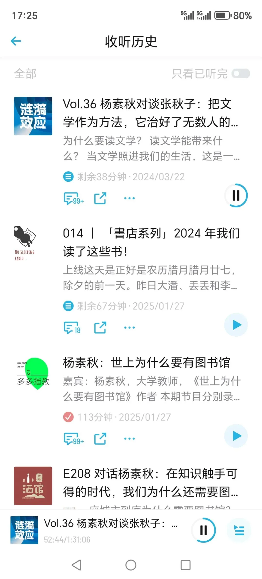 以我喜欢的书为例,比如《世上为什么有图书馆》或红楼梦相关节目的作者,他们会被邀请到小宇宙与圈内人聊天,你能从中获得更多生活趣事,这同样是宝贵财富。这比自己揣摩作者意图、钻研论文要容易得多。