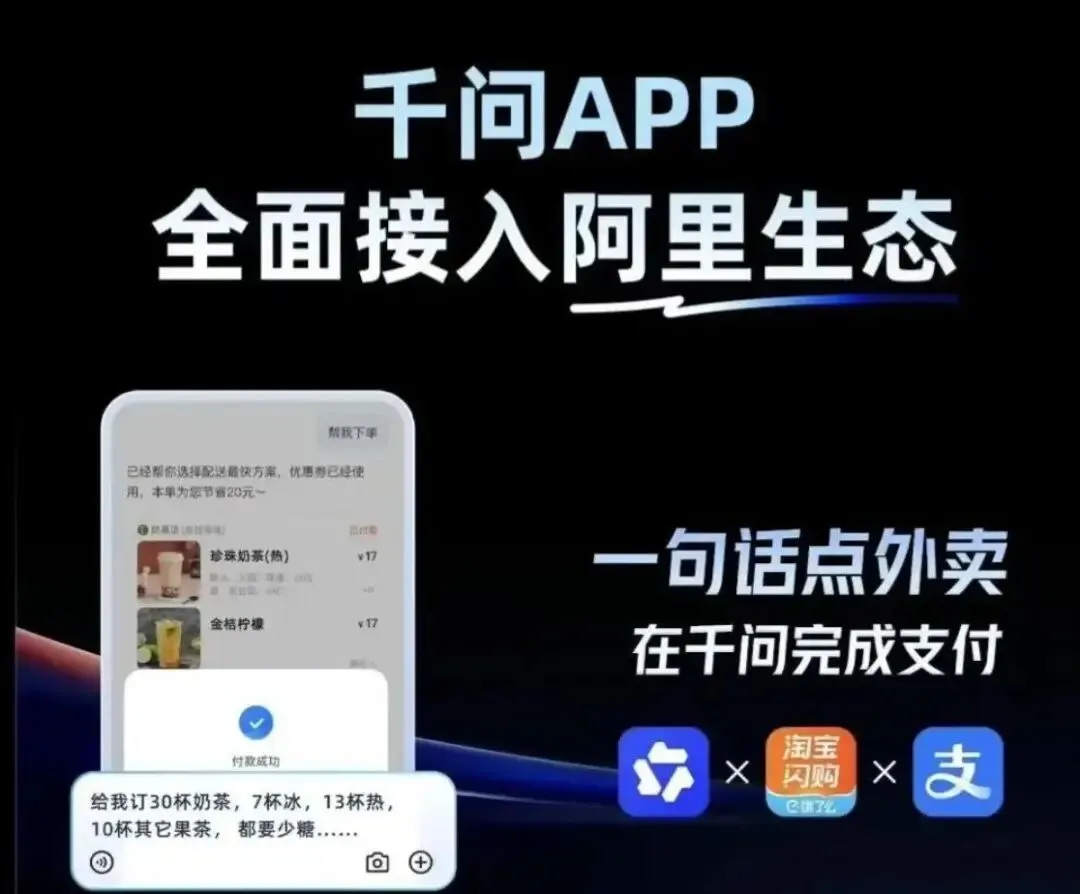 1月15日,千问App宣布全面接入淘宝、支付宝、闪购、飞猪、高德等阿里生态业务,全球首次实现点外卖、买东西、订机票等AI购物功能,并向所有用户开放测试。 也就是说,你可以让 AI 直接帮你点外卖、订机票、订酒店、做旅游攻略。简而言之,就是用千问 App 让阿里的生态闭环了。