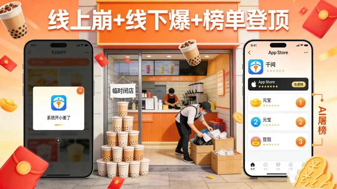 千问APP杀疯了!免单9小时破千万单,奶茶店闭店、服务器崩了,网友:卡崩也要薅到爽
