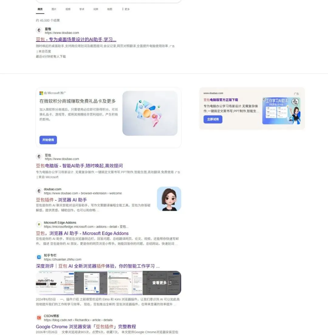 Bing搜索豆包插件,直接导引到豆包插件页面