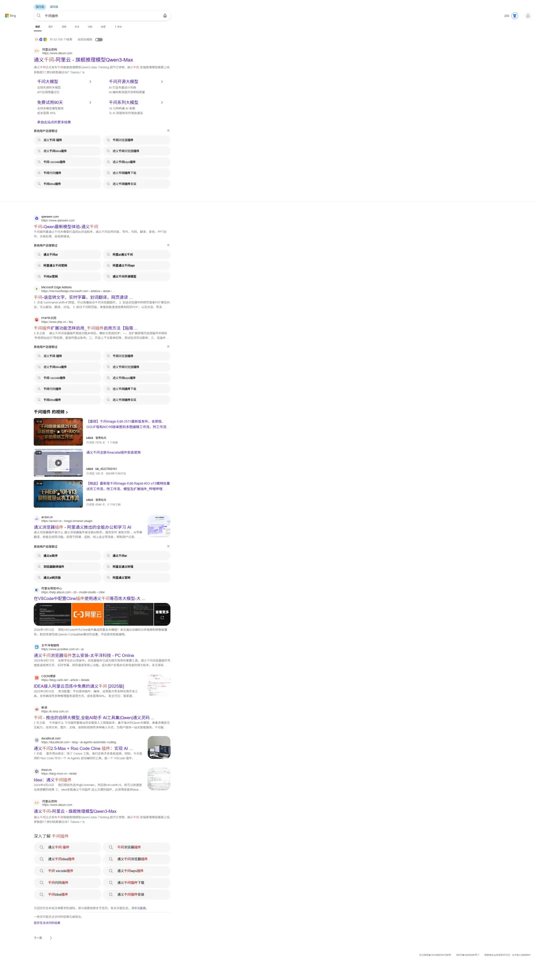 1.搜索页面竟然找不到官方插件下载页,唯一一个标题有插件的还是三方的一个AI工具集中的介绍。找了一下才在千问下载页找到插件下载。即使是在下载页,第一眼也是看不到的,需要往下拉一下,当然我的电脑屏幕小一些。