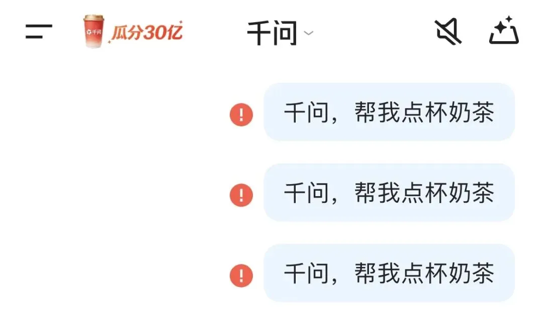 昨天一早刚到公司,就被同事按头安利千问APP:“快冲!AI帮点奶茶,一分钱喝到爽!” 作为常年被“薅羊毛陷阱”套路的人,我第一反应是“不信”——这年头哪有这么好的事?可接下来的画面狠狠打了我的脸:邻座同事的瑞幸生椰拿铁刚送到,前台小姐姐的霸王茶姬就紧随其后,连平时不喝奶茶的程序员小哥都捧着一杯古茗,晃悠着说“实付0.01元,香!” 看着办公室人手一杯“AI免单奶茶”,我终于按捺不住下载了千问APP。但是等我注册完准备下单时,才发现这场“奶茶狂欢”早已失控。因为当我打开软件的时候,发送:“千问,帮我点奶茶”但千问就一直转转转,甚至还出现红色感叹号,瞬间就懂了,是点的人太多了,系统都出现了bag。