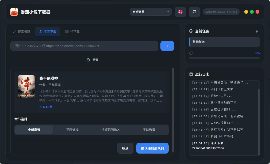 只需要复制小说的链接或ID,工具就能自动识别并抓取内容。