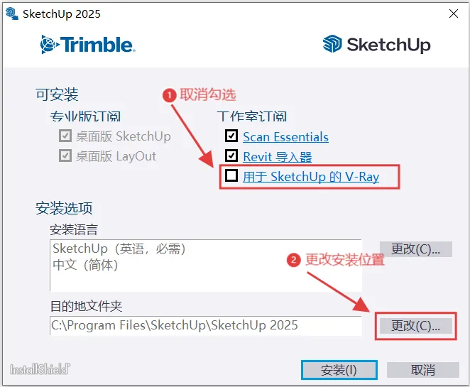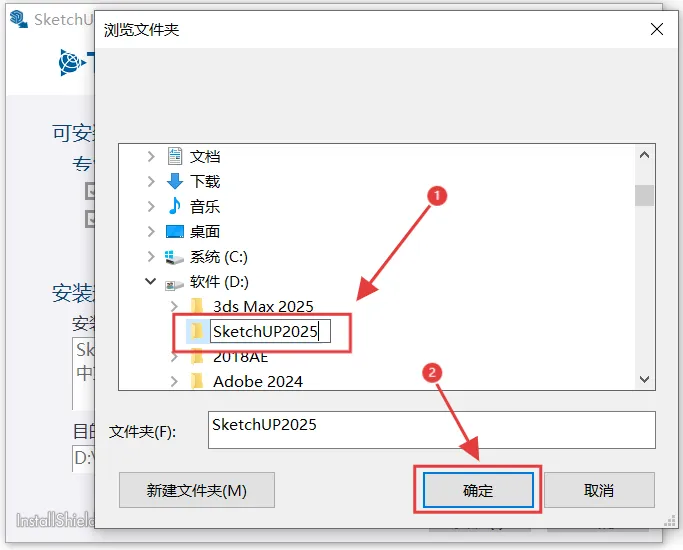 5.注意!安装路径不能有中文,可以在D盘新建一个【SketchUp 2025】文件夹。