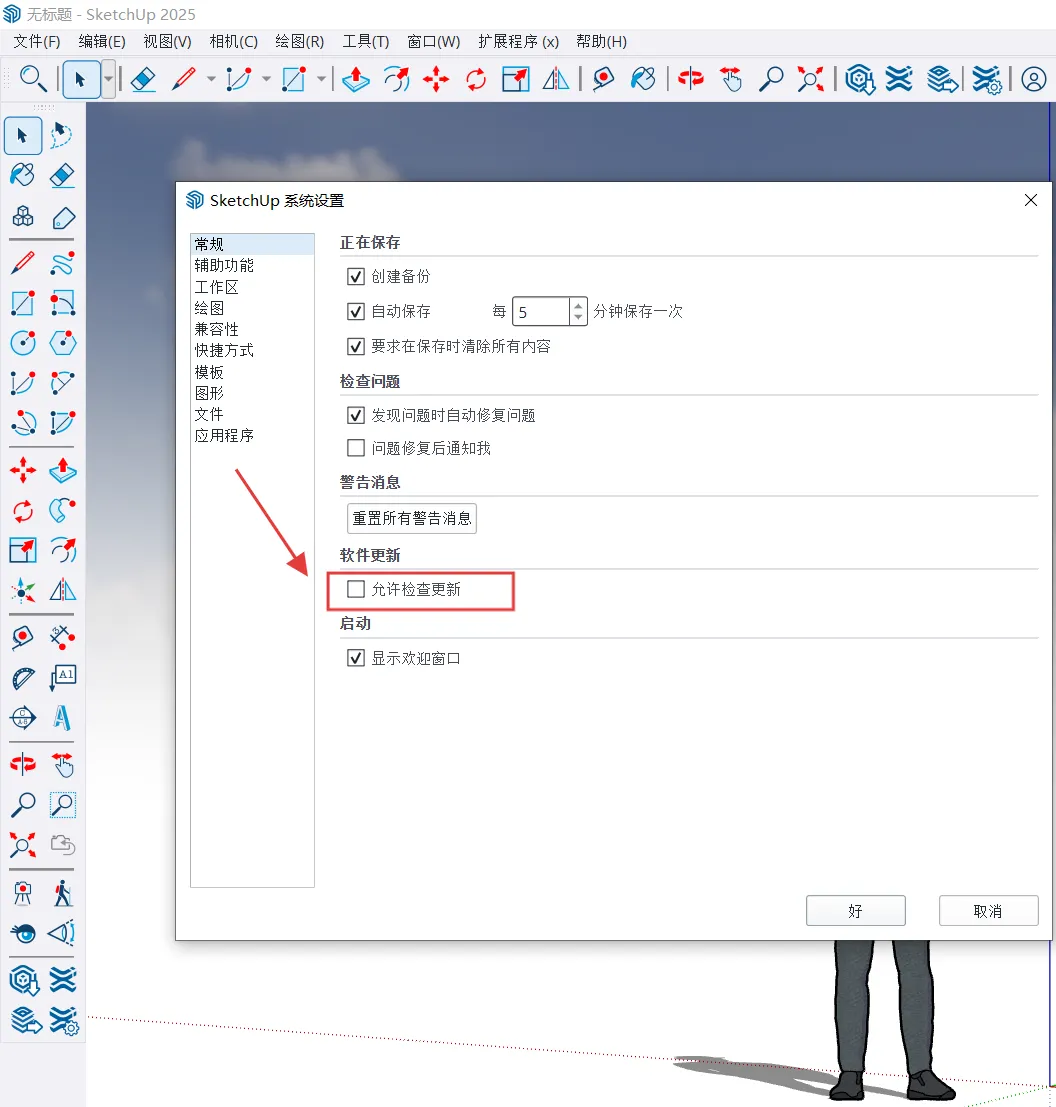 11.取消勾选【允许检查更新】。(这是已激活版,如果更新有可能会使用异常)。