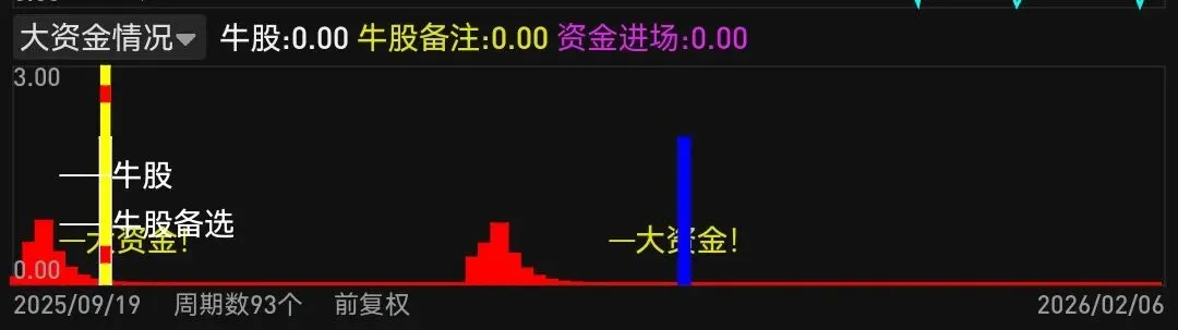 DRAWTEXT(资金进场标志, 0.6, ‘—大资金!’);
