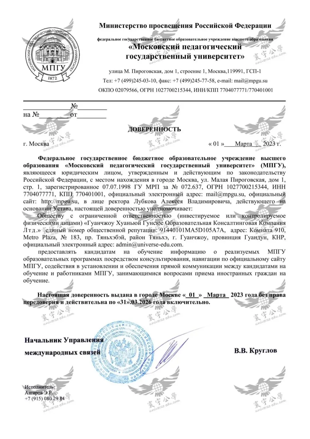 2026学年 学校官方授权书