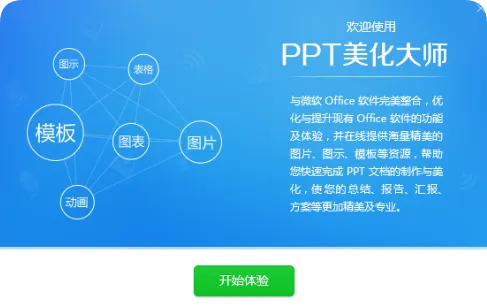 安装完成自动打开 PowerPoint → 功能区新增“美化大师”选项卡 → 首次使用点击“立即体验”