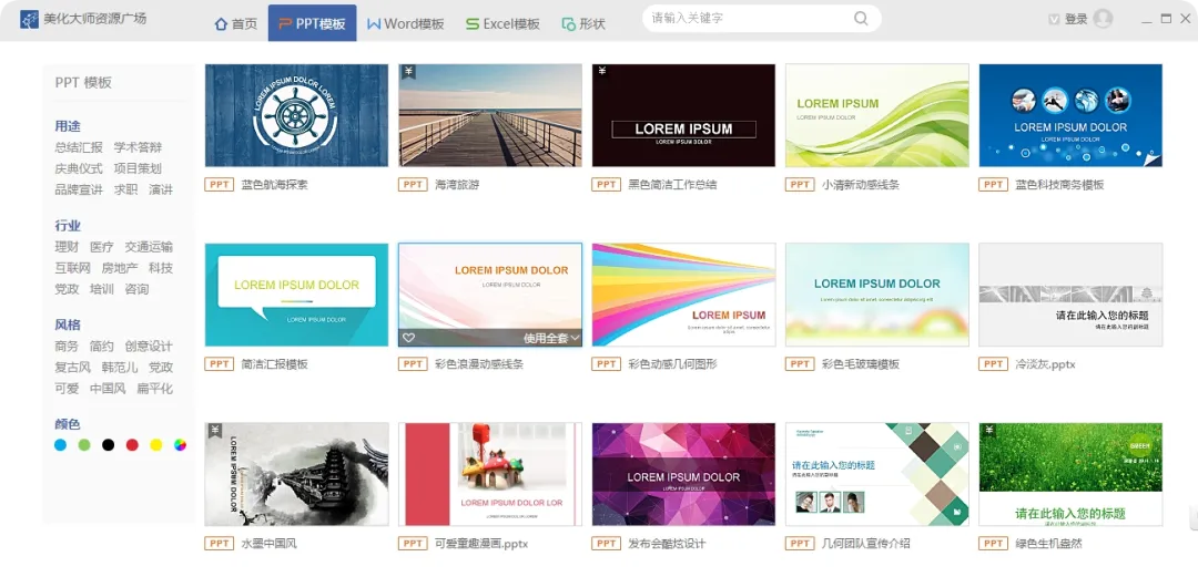 PPT美化大师是一款与 Microsoft Office 深度嵌套的免费插件,通过 COM 接口直接在 PowerPoint 内提供“一键美化、模板套用、图表生成、图片素材”四大核心能力:内置 20+ 场景、持续更新的在线模板库,可一键替换整套配色与字体;160+ 逻辑图示支持拖拽插入并自动匹配主题色;10 万张无背景高清图片与创意相册,让多图排版秒变画册;2025 版新增在线动画模块,30 种转场特效一键应用。