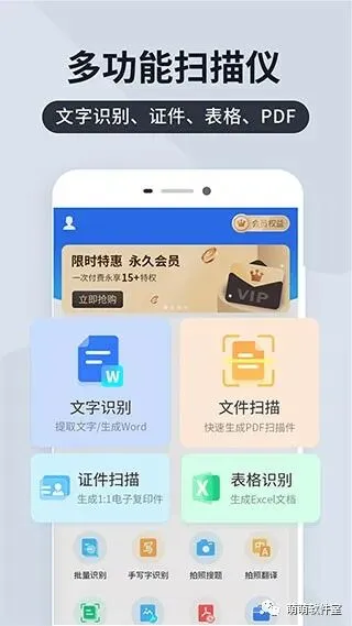 文字识别、批量识别、多张扫描、表格识别、证件扫描识别等17项功能都可以免费使用,