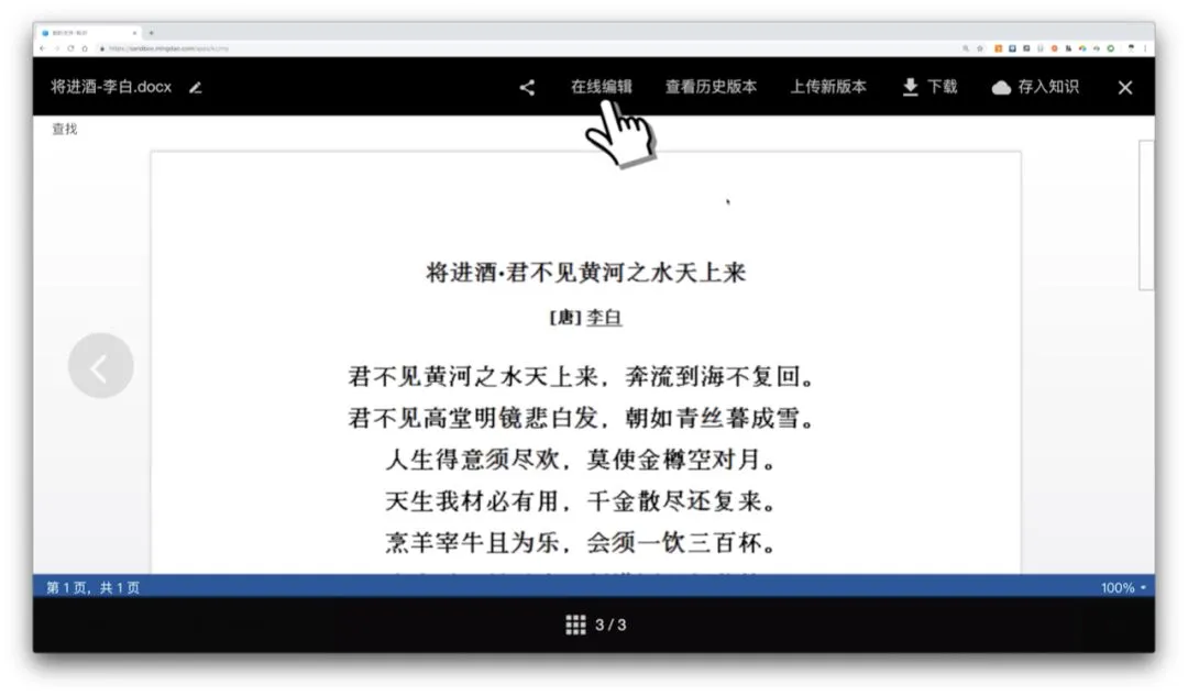 在明道任意可以在线预览文件的地方,点击在线编辑文档就可以使用。使用体验和你在本地编辑Office差不多。