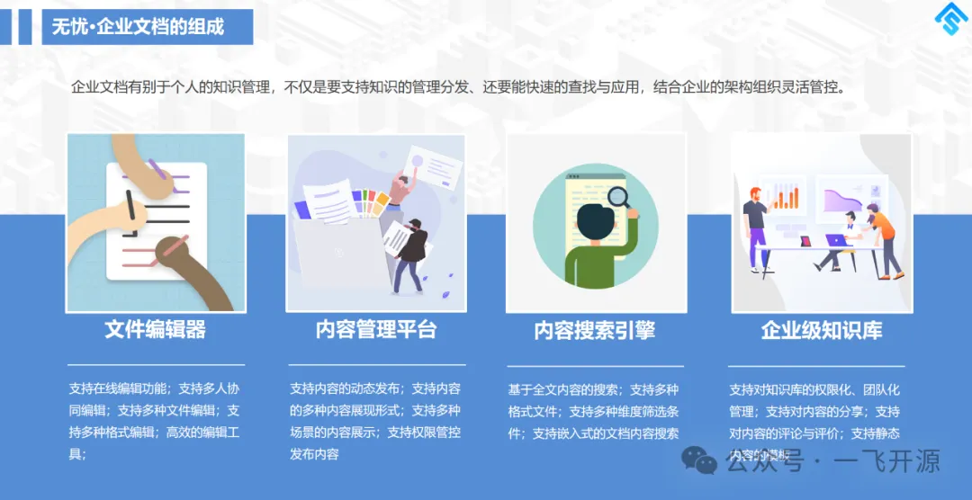 无忧·企业文档=企业级知识库+在线编辑工具集+企业搜索引擎+内容展示平台