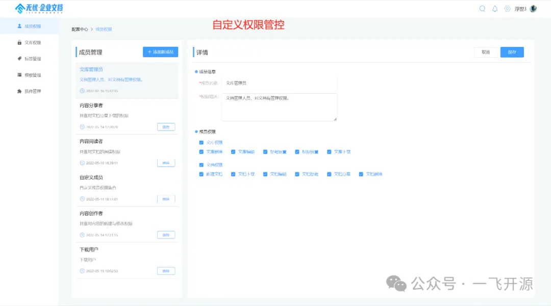 支持多种角色协同(成员、管理者、所有者)