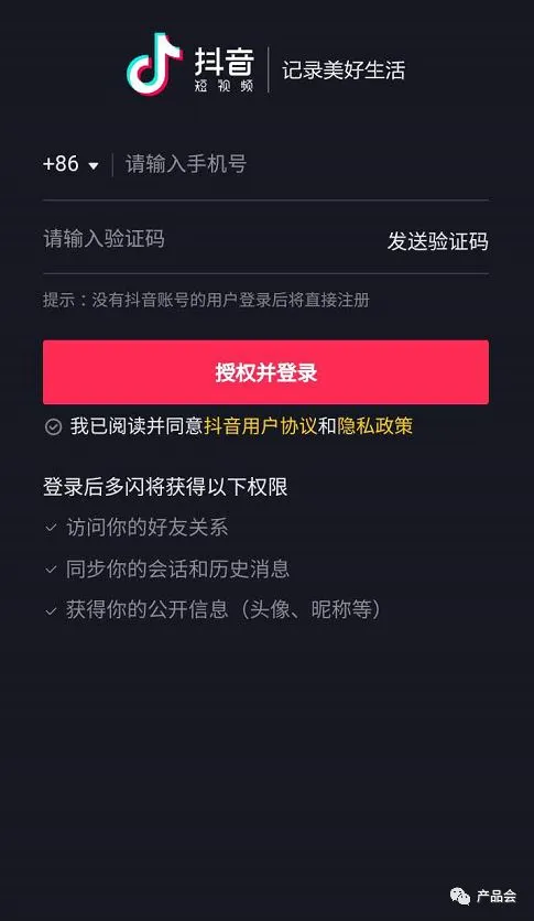 ③如本机环境未安装抖音app,则进入手机号验证登录界面,同时,界面显示抖音相关元素,强化用户认知。