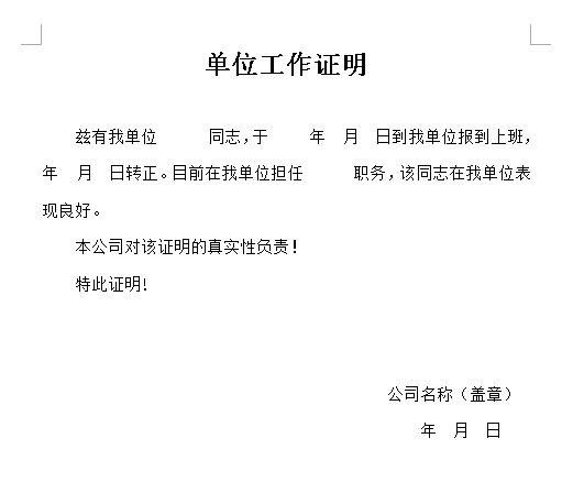 目前我们能做的也只能先发图片给大家看,如果觉得适合自己的话等下给网址直接电脑上下载吧,毕竟像工作证明word这样的在电脑上修改起来也还是最方便的,最终您还得打印出来不是;小编是不是啥都给你们想好了….
