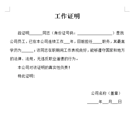 想获得工作证明word电子版本请下如下步骤