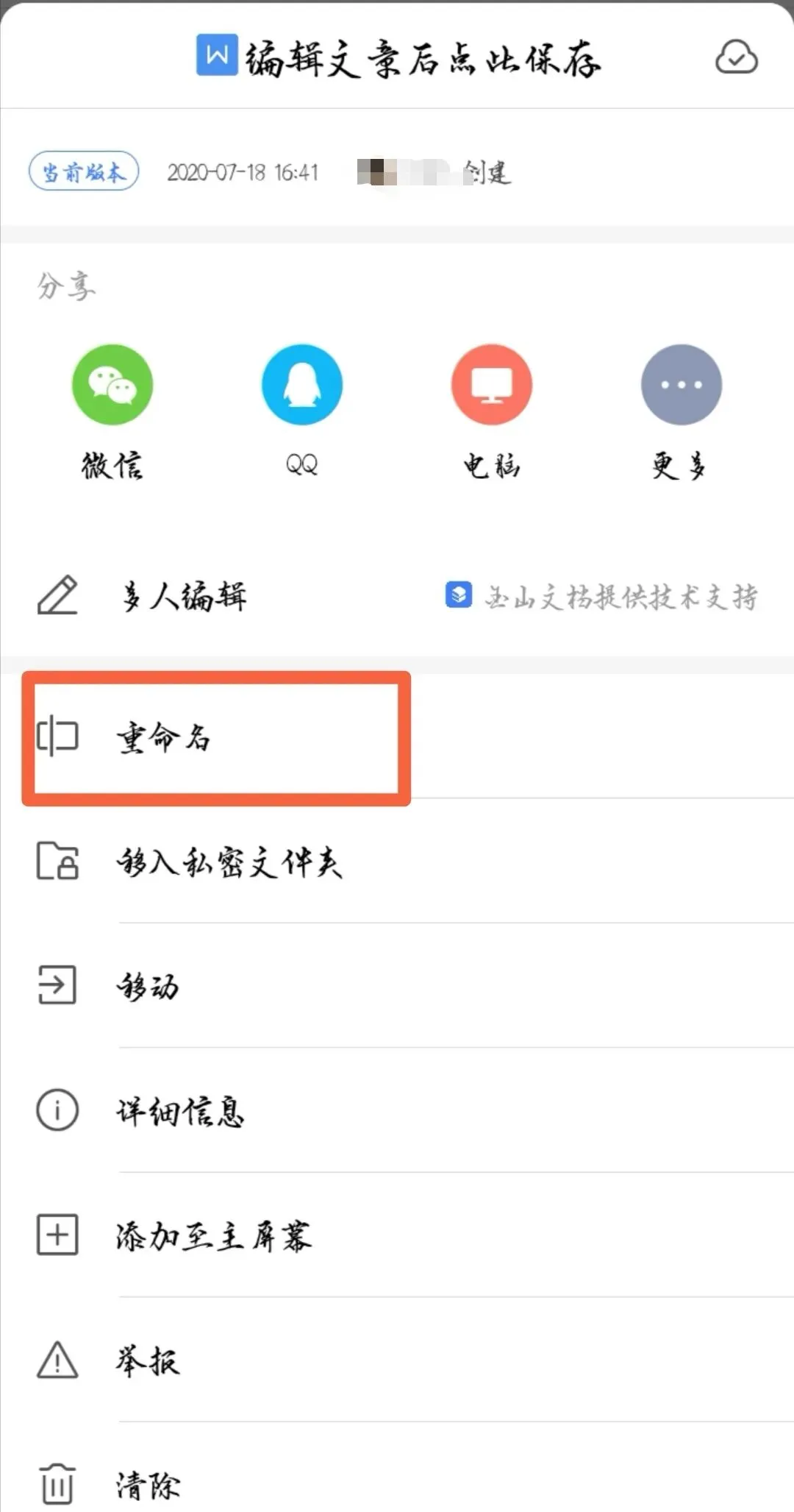 点击右键-选择重命名