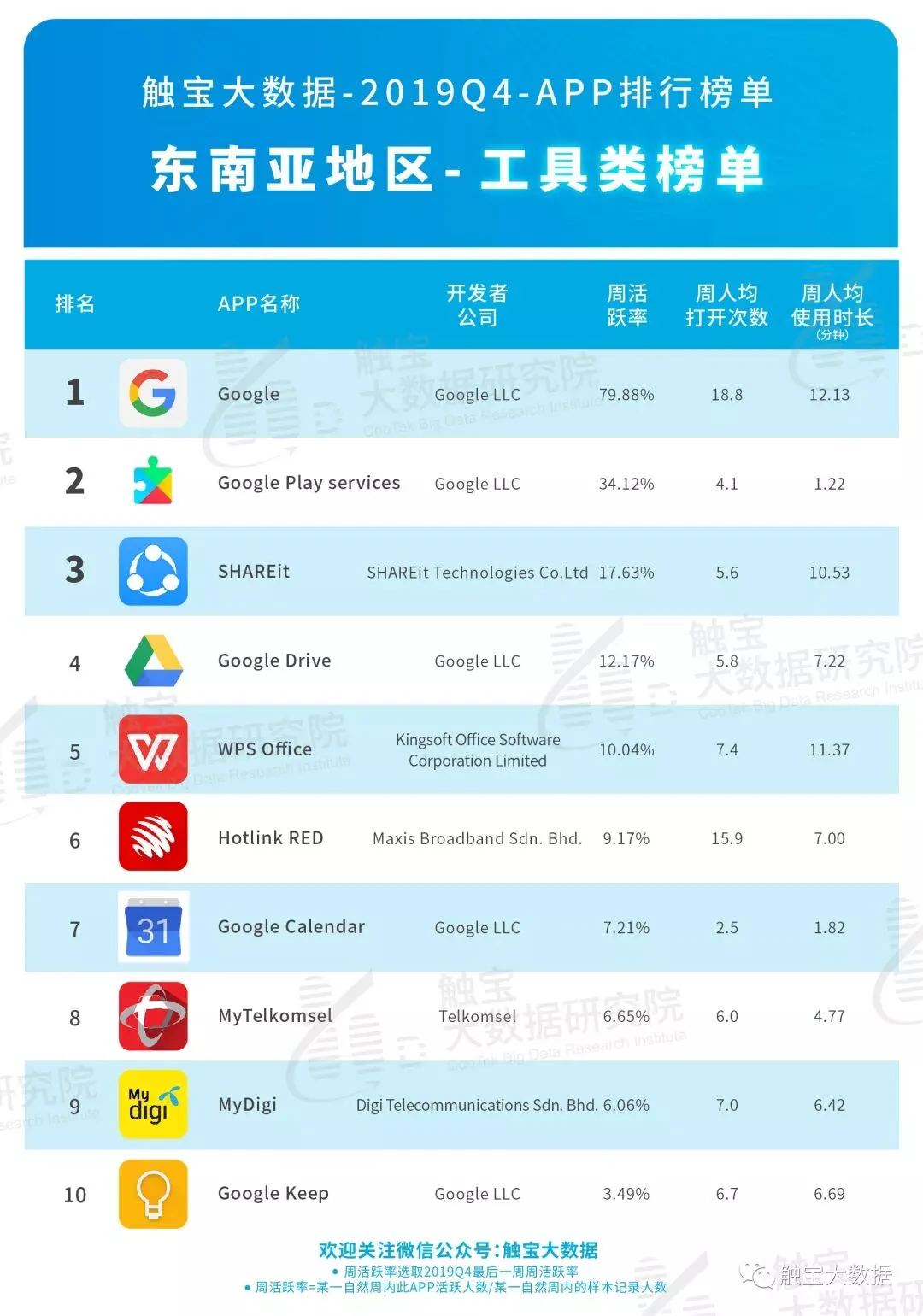 2019Q4东南亚市场APP排行榜:文档编辑需求成为工具新蓝海,超休闲游戏正开拓市场