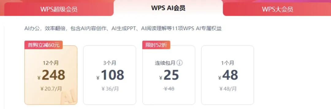 「WPS AI会员」
