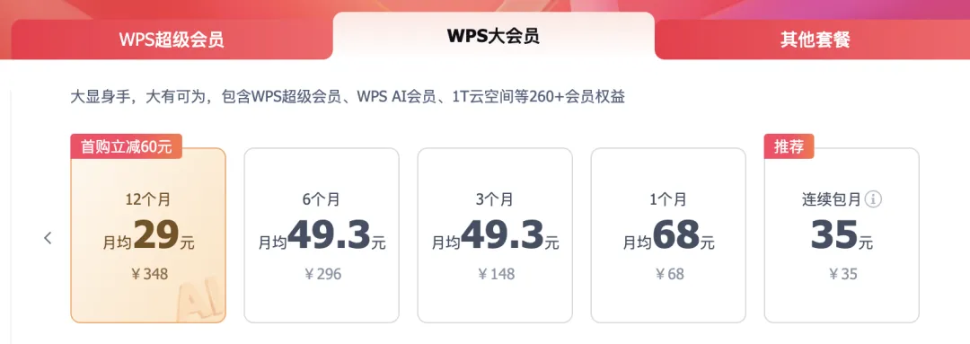 你如果是真心想用「WPS AI」的话,咱们这里,其实还有一个hin划算的「大会员」项目…