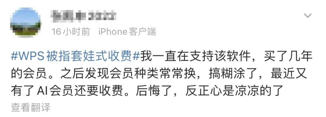 更何况大家对「WPS」的意见,远不止会员降级这一个行为,眼花缭乱的各种VIP也是。