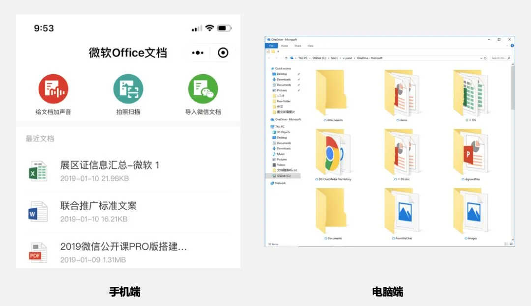 “微软Office文档”小程序结合微信开放的“选择群聊天文件”接口,开发出了二者准确契合的新功能「导入微信文档」。来帮助大家管理微信里的文档,方便移动办公。