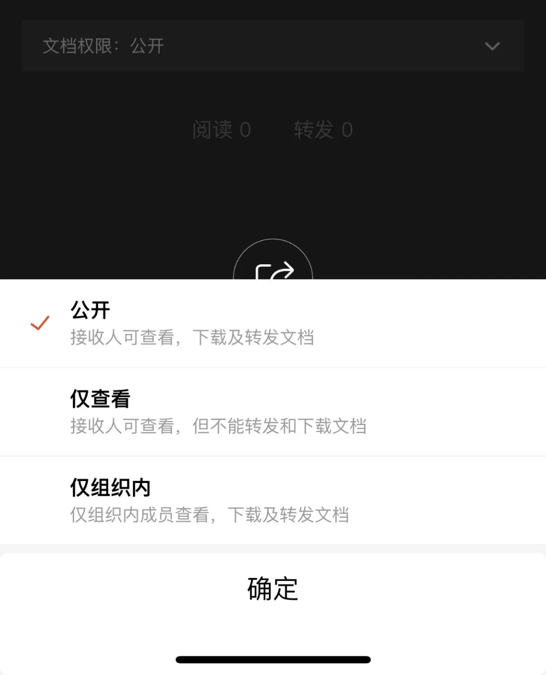 在文档分享好友过程中,分别可设置三种权限:公开、仅查看、组织内。高效安全,防止重要信息外泄。并且文档长久保存,永不过期。