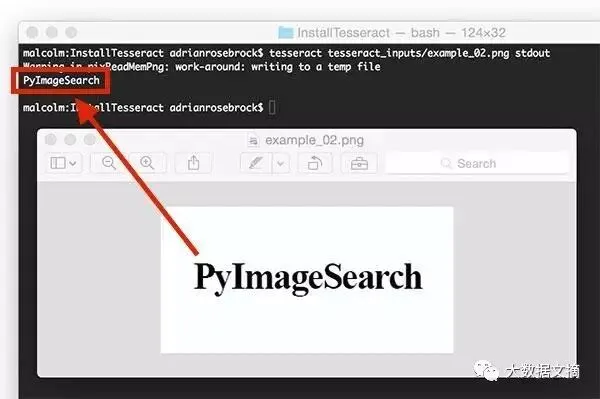成功Tesseract成功的识别了图片中的文字“PyImageSearch”。