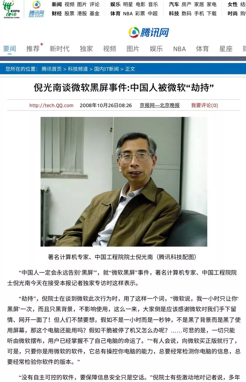 计算机专家,中国工程院院士倪光南更是站出来公开表示,“中国被微软挟持了”。