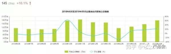 根据云集2018年6月至2019年5月月度独立设备数的数据得知,月度独立设备数在2019年2月份急剧下降,在2018年9月至10月和2019年2月至3月这两个阶段月度独立设备数和环比增幅大幅上升。