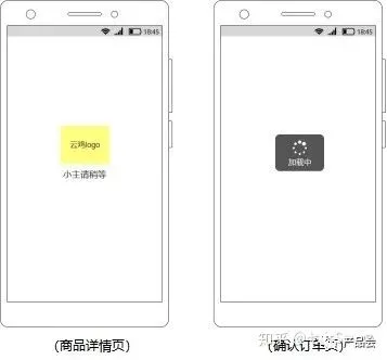交互:当网速较慢,新的页面还未出现时,从页面中部弹出;新的页面出现时,立即消失。