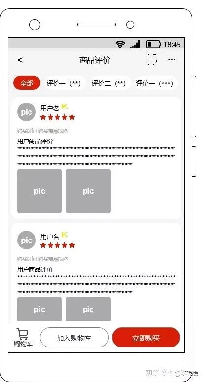 页面主体结构:用户信息包括用户头像和用户名、发布时间、用户对商品的推荐文案、商品图片、点击可进入商品详情页的标签键