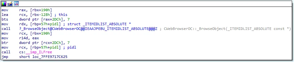 图1:将ShellLink结构的ID列表传递给CWebBrowserOC :: BrowseObject()