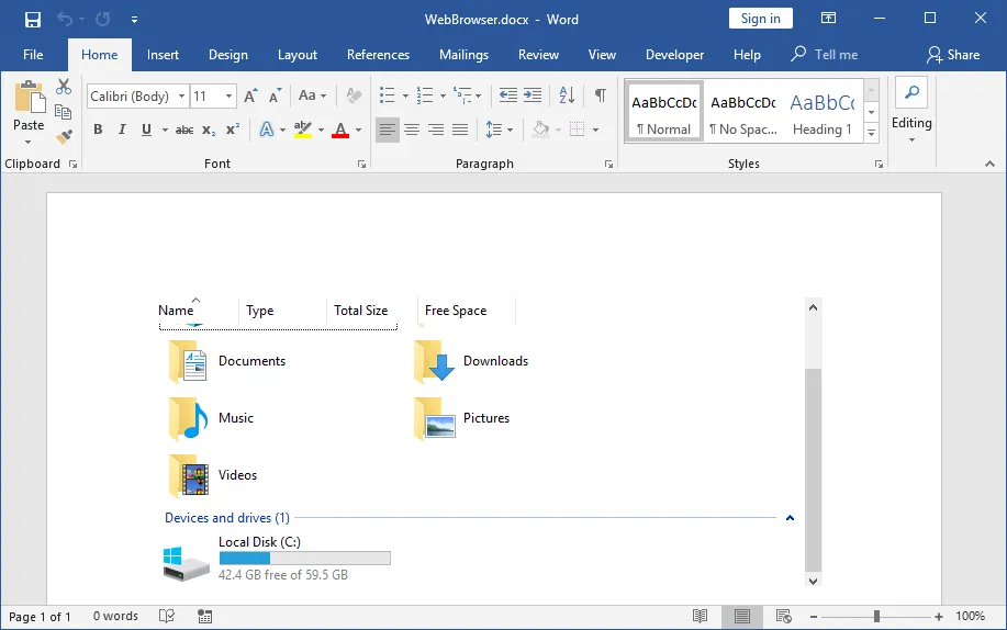 在管理员限制浏览某些文件夹或驱动器的可能性的情况下,嵌入Windows Explorer对象会很方便。例如,如果限制对C:驱动器的访问,则本地用户可以使用包含嵌入式Windows Explorer的Office文档来规避此限制。此外,该对象可用于窃取NetNTLM哈希值,但由于使用Office文档并不难做到这一点,因此使用单击的OLE对象进行激活是没有意义的。