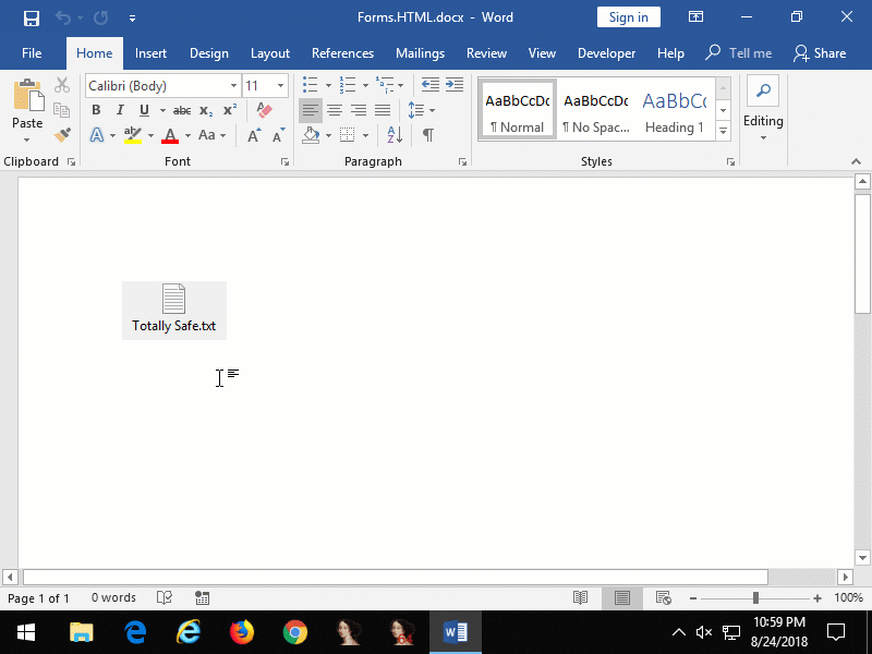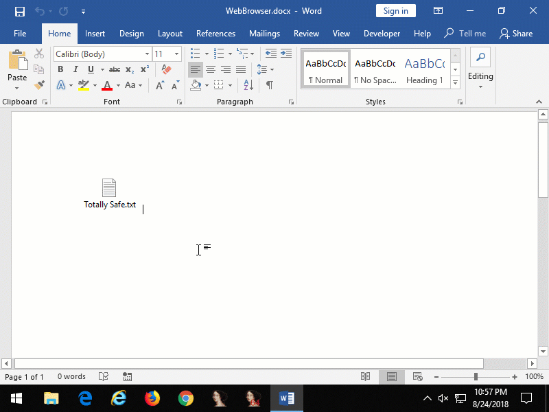 当Shell.Explorer.1充当嵌入式Internet Explorer时,事情会变得更有趣。除了可以在文档中嵌入网络浏览器之外,它还允许浏览本地计算机上的文件,以及浏览到远程位置(共享和网站)上的文件。要说没有任何用户交互,这是不可能的。单击激活也适用于此模式——单击该对象将触发Internet Explorer的文件下载功能,这意味着将向用户显示“文件下载”对话框。如果用户单击“ 运行”或“ 打开”(取决于文件格式),就会执行该文件。