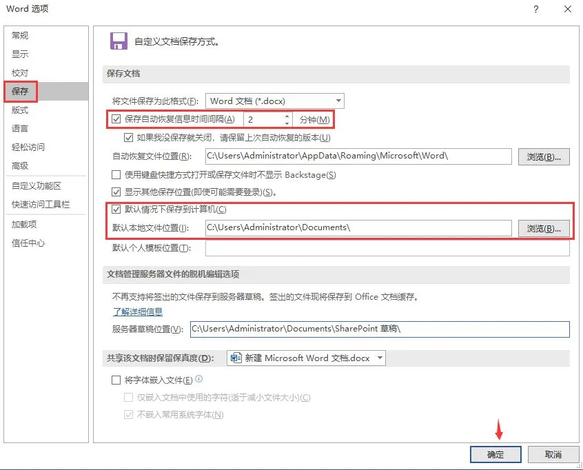 点击左边的“保存”选项,在右边可以设置自动保存的间隔时间,范围是1~120的整数,比如我设置的2分钟,还可以设置保存的路径,设置完成后点击“确定”就可以了。